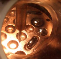 Visiting scientist Douglas Hofmann (MS '06) and and colleagues, including William Johnson, Ruben F. and Donna Mettler Professor of Engineering and Applied Science, have created structural metallic-glass composites, based in titanium, that are lighter and less expensive than any the group had previously created, while still maintaining their toughness and ductility--the ability to be deformed without breaking. They are among the toughest engineering materials that currently exist. [Caltech Press Release]