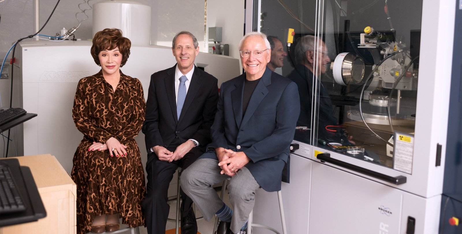 Lynda Resnick, President Thomas F. Rosenbaum, Stewart Resnick (left to right)